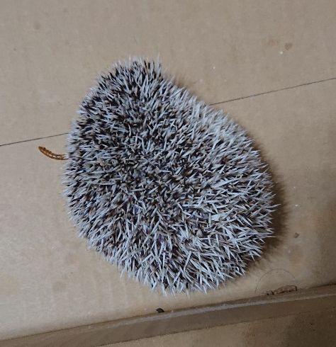 そして体をまん丸くしてハリを立たせます。 触るなよ!ってとこですか。 こうなるとイタタッとなるので素手ではさわれません。 失礼しますよ〜と、小さな声をかけながらタオルでくるんでケージの外へ。 お掃除するからちょっと我慢していてくださいね〜。 ★茶色の細長いのは機嫌直しにあげた乾燥ミルワーム。 シャっ!とすごい勢いで食べました! ボリボリボリッ…ワイルドな咀嚼音!!